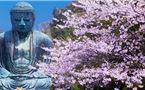 Tham quan Đại Phật Kamakura (Kōtoku in) - Quốc bảo của Nhật Bản, giữa khung cảnh mùa xuân rực rỡ, tượng Phật bằng đồng cao 13,5m nổi bật dưới những tán hoa anh đào hồng phấn, tạo nên bức tranh yên bình và hùng vĩ, nơi du khách vừa chiêm ngưỡng biểu tượng thành phố vừa tận hưởng không khí thanh tịnh của mùa hoa. (Không bao gồm phí vào bên trong tượng phật)