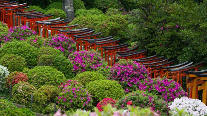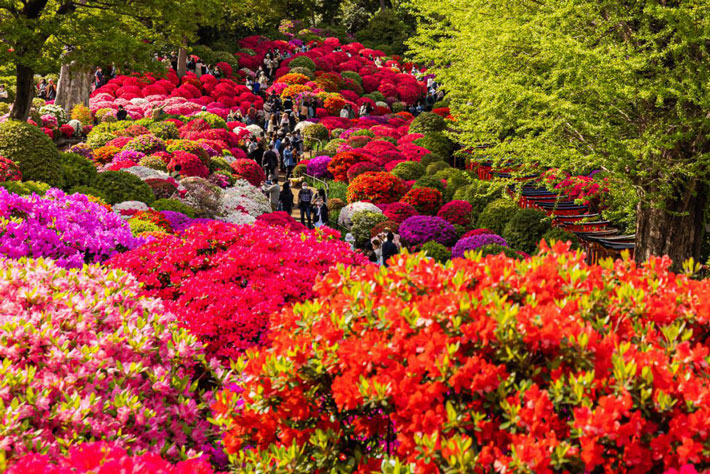 Đền Nezu - Nổi bật với lễ hội hoa đỗ quyên hơn 3.000 bụi thuộc 100 giống, nở rộ từ đầu tháng 4 đến đầu tháng 5, mang đến khung cảnh rực rỡ và đậm nét văn hóa mùa xuân Nhật Bản.