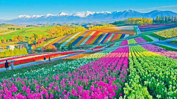 Shikisai-no Oka Flower Fields: Là một cánh đồng hoa đẹp lộng lẫy, rộng hơn 15 hecta trên một ngọn đồi tại thị trấn Biei. Nơi đây là “ngôi nhà” của vô vàn loài hoa mà mỗi loài lại thay đổi theo mùa, đem đến vẻ đẹp phong phú vào bốn mùa trong năm cho cánh đồng.