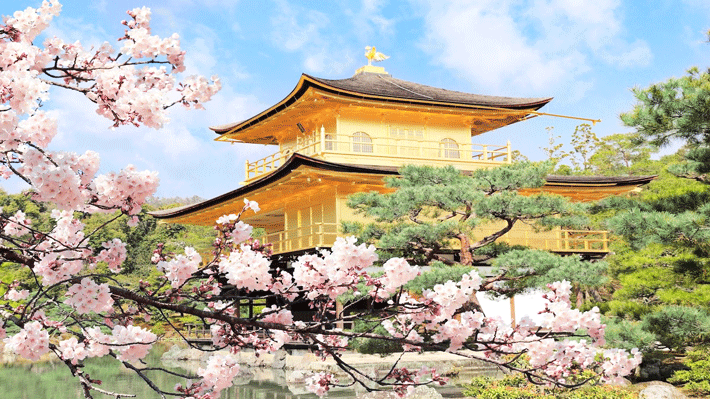 Chùa Vàng: Nằm ở Kyoto, Kinkakuji là một trong những di sản văn hóa nổi bật nhất của Nhật Bản. Vào mùa xuân, khi hoa anh đào nở rộ xung quanh hồ nước trong xanh, chùa Vàng như được tô điểm thêm vẻ kiều diễm, hài hòa giữa thiên nhiên và kiến trúc.