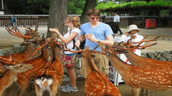 Công viên Nara: Là công viên đồ sộ dưới chân Núi Wakakusa với đầy hươu nai tinh nghịch và thân thiện. Khung cảnh thiên nhiên gồm những ngôi chùa nằm trong khu rừng nguyên sơ và hồ nước đầy rùa và cá chép.