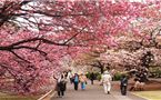 Ngắm hoa anh đào Kawazu Zakura: Loại hoa anh đào nở sớm hơn các loài cây hoa anh đào khác, thường vào đầu tháng 2 và có thời gian nở kéo dài khoảng 1 tháng. Loài hoa này cũng có đặc trưng khác biệt với các loại hoa anh đào khác với cánh hoa rộng hơn và màu đậm hơn.