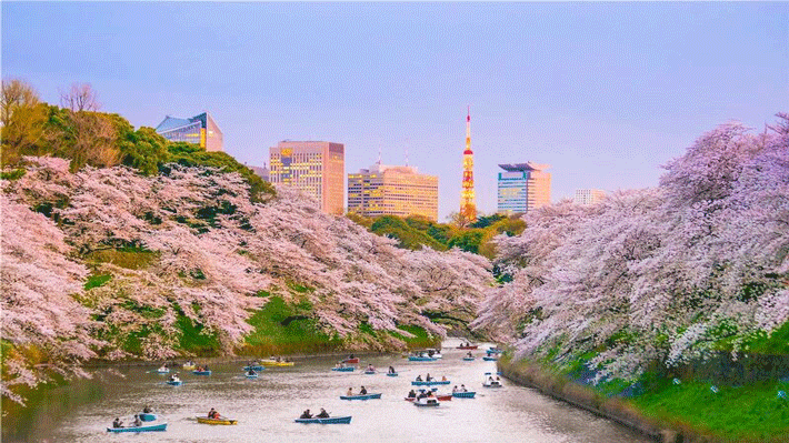 Đại lộ Chidorigafuchi: Nơi bạn có thể thuê thuyền (chi phí tự túc) để ngắm hoa anh đào rủ xuống mặt nước của hào nước bao quanh Hoàng cung, tạo nên khung cảnh lãng mạn và thơ mộng.