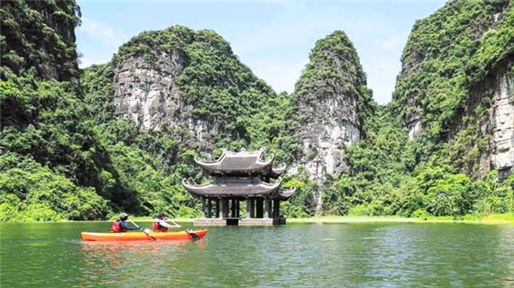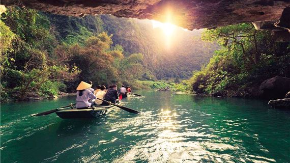 13:30: Tiếp tục chuyến đi đến khu du lịch Tràng An, nơi bạn sẽ được tham gia vào chuyến thuyền độc đáo khám phá hệ thống hang động tự nhiên và ngắm nhìn những cảnh quan núi non hùng vĩ từng xuất hiện trong bộ phim Hollywood "Kong: Skull Island".