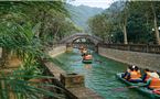 Trải nghiệm ngồi thuyền men theo dòng nước uốn lượn giữa núi non.