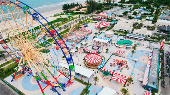 Đến nơi đoàn tham quan Bikini Beach - Thu hút với các biểu tượng khổng lồ và nhiều hoạt động ngoài trời như Muscle Zone, tạo cơ hội chụp hình và tham gia thể thao.