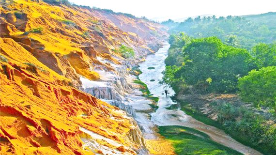 Suối Tiên, nơi có dòng suối nhỏ chảy qua giữa những cồn cát đỏ. Nó giống như một phiên bản thu nhỏ của hẻm núi đỏ.