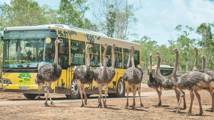 Vinpearl Safari - vườn thú lớn thứ 2 Đông Nam Á (chi phí tự túc): là công viên sở thú hoang dã đầu tiên tại Việt Nam. Tại đây, du khách sẽ được trải nghiệm mô hình sở thú có 1-0-2, check-in sống ảo cùng các loài động vật quý hiếm hay chiêm ngưỡng những màn biểu diễn đỉnh cao