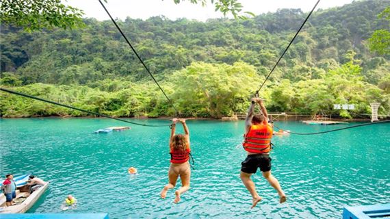 Tắm sông và đu zipline tại Sông Chày – Hang Tối, trải nghiệm mạo hiểm nhẹ giữa thiên nhiên.