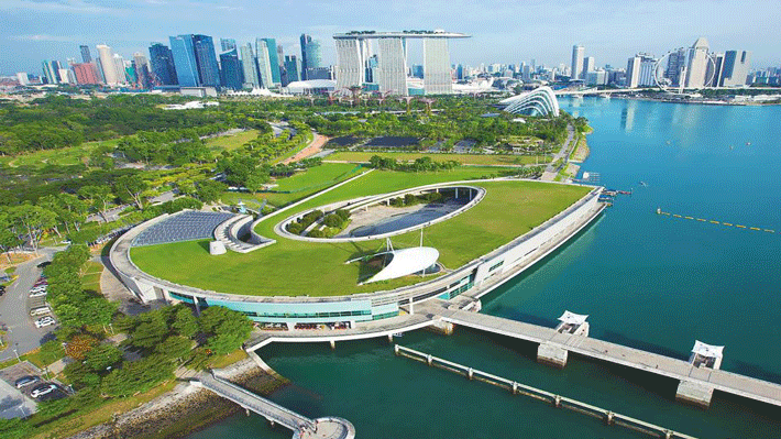 Marina Barrage - Hồ nhân tạo giữa trung tâm Singapore với lưu vực 10.000 ha - kiệt tác cải tạo thiên nhiên, nơi tổ chức các sự kiện thể thao dưới nước và trưng bày nghệ thuật độc đáo.
