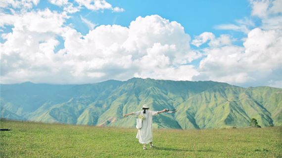 Thảo nguyên Tà Xùa: Nhìn từ đây bạn sẽ thấy những dãy núi lớn xanh mướt mắt và bầu trời rộng mênh mông. Mùa này ở đây ngút ngàn màu xanh tươi mát.