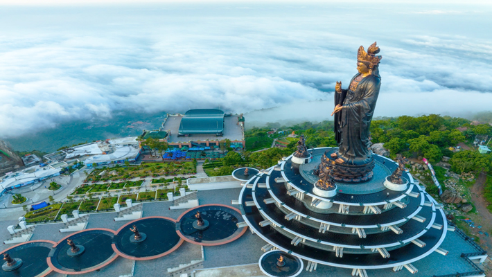 Quý khách đi cáp treo ngắm cảnh lên đỉnh núi, tham quan các ngôi chùa linh thiêng và tượng Phật Bà khổng lồ sừng sững giữa mây trời, tận hưởng khung cảnh hùng vĩ và lưu lại những khoảnh khắc tuyệt đẹp từ trên cao. (chi phí cáp treo tự túc)