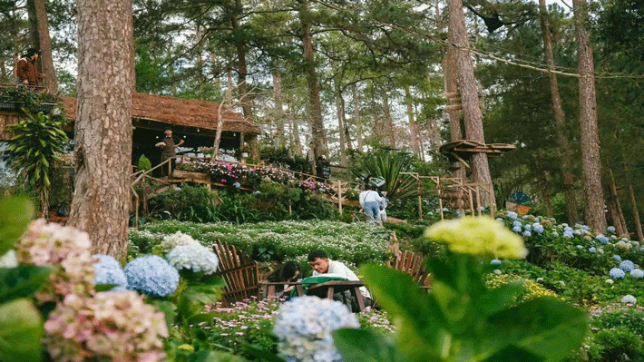 Vườn hoa cẩm tú cầu ở Happy Hill Coffee.