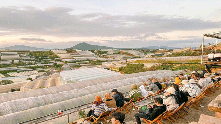 Option 2: Check-in Cà phê Xóm Lèo - Quán cà phê view đồi với tầm nhìn thung lũng đèn Đà Lạt cực chill, không gian mở gần gũi thiên nhiên (chi phí nước uống tự túc).