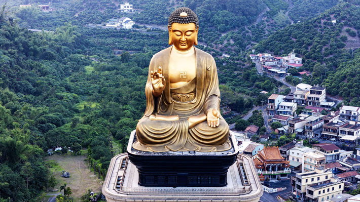 Phật Quang Sơn: Chiêm ngưỡng bức Phật tượng cao nhất thế giới – Đại Phật Quang, pho tượng Phật sừng sững, nổi bật với nụ cười hiền từ trên nền trời xanh. Đây là pho tượng đồng cao nhất thế giới hiện nay.