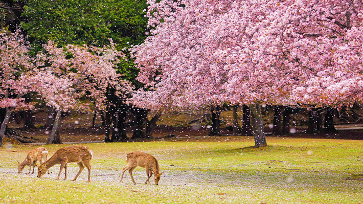 Công viên nai Nara mùa hoa anh đào nỏ sớm.