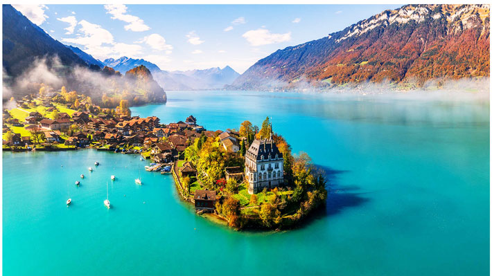 Thị trấn Iseltwald – bối cảnh trong bộ phim Hàn Quốc nổi tiếng “Hạ cánh nơi anh”. Bao quanh khu hồ Brienz thơ mộng là núi rừng trùng điệp, mây phủ quanh năm, lửng lơ sườn đồi. Màu nước xanh ngọc bích, với khung cảnh thiên nhiên trữ tình, lấp ló những nếp nhà mái vàng càng tạo nên sự bình yên cho ngôi làng tuyệt đẹp này.