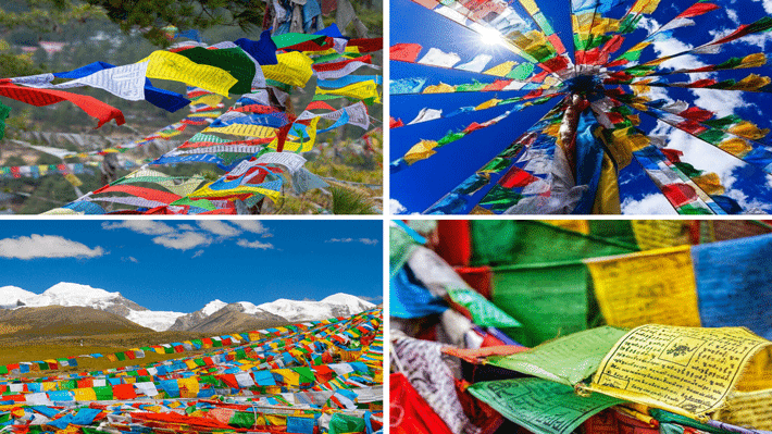 Cờ Lungta Shangri-La - Rừng cờ cầu nguyện khổng lồ với sắc màu rực rỡ, in kinh chú trên những cột gỗ cao giữa núi trời. “Lungta” trong tiếng Tạng nghĩa là “ngựa gió”, biểu tượng của may mắn và bình an.