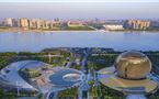Quảng trường thành phố Hàng Châu - Trung tâm hành chính, thương mại hiện đại với kiến trúc hoành tráng và màn trình diễn ánh sáng, nhạc nước về đêm.