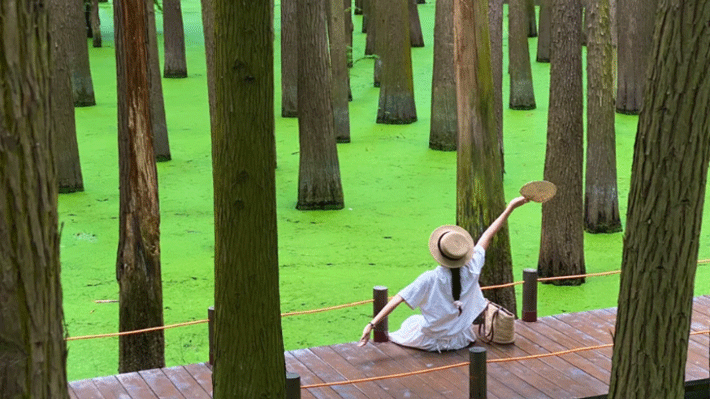 Hồ Thanh Sơn: Khu rừng matcha lặng thầm giữa lòng Hàng Châu, sở hữu một màu xanh tươi mát đến lạ kỳ, hệt như một đại dương xanh biếc rộng lớn. Cảm giác đi bộ trên con đường ván gỗ quanh co, uốn lượn giữa rừng cây, chẳng khác nào đang lạc bước vào thế giới cổ tích diệu kỳ.
