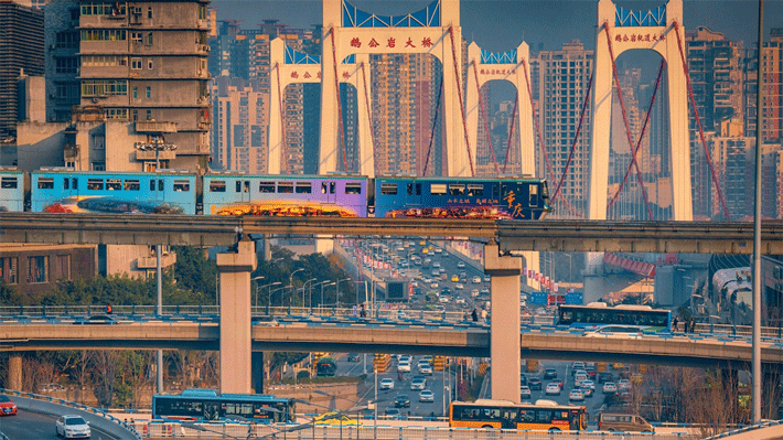 Trải nghiệm tuyến tàu điện xuyên tòa nhà Lý Tử Bá (Liziba) - Được bố trí ngay trong lòng tòa nhà chính là nét đặc trưng hiếm có của thành phố được bao bọc bởi sông và núi.