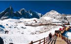 Núi Tuyết Ngọc Long - 'Thụy Sĩ Á Đông' với tuyết phủ quanh năm, khám phá vẻ đẹp hùng vĩ và lưu giữ khoảnh khắc đáng nhớ. Đoàn đi cáp treo lớn lên núi với độ cao 4.506m và chụp ảnh lưu niệm. (bao gồm cáp treo lớn, không bao gồm xe điện và bình dưỡng khí)