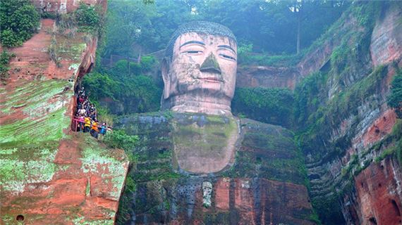Lạc Sơn Đại Phật - Tượng Phật bằng đá cao nhất thế giới. Bức tượng Phật này được tạc vào vách đá Thê Loan của núi Lăng Vân, nằm ở chỗ hợp lưu của ba con sông là Mân Giang, Đại Độ và Thanh. Bên phải bức tượng Phật là là chỗ để du khách dừng chân và chụp ảnh cùng bức tượng. Bên dưới là con đường bên vách núi gọi là “Lăng Vân Sạn Đạo” dài khoảng 45m xuống đến chân Phật, quãng đường này giúp khách tham quan ngắm nhìn tượng Phật rõ hơn. (Bao gồm du thuyền)