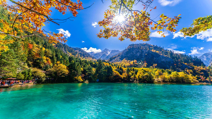 Cửu Trại Câu - “chốn tiên cảnh hạ giới” nổi tiếng với hàng trăm hồ nước trong vắt, thác ghềnh đẹp như tranh vẽ. Tên gọi nghĩa là “chín trại của người Tạng”, hình thành trên vùng núi đá vôi trầm tích hùng vĩ. (Bao gồm xe du lịch sinh thái công cộng)