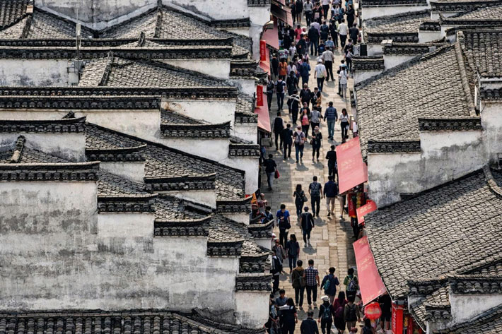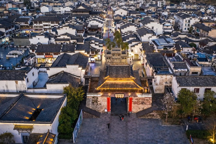 Lê Dương Ấn Tượng - phố cổ được phục dựng theo kiến trúc nhà gỗ Hui Châu đặc trưng của An Huy. Nằm ngay bên dòng sông Tân An Giang. Buổi tối, cả khu phố được thắp sáng bằng h àng trăm chiếc đèn lồng đỏ, tạo nên không khí lãng mạn – nhộn nhịp.
