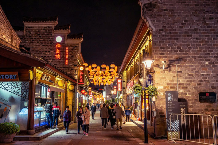 Phố cổ Nam Đường - khu phố cổ nổi tiếng nhất Ninh Ba, nằm dọc theo dòng kênh Fenghua. Con phố mang hơi thở lịch sử với những dãy nhà cổ kính, đèn lồng đỏ treo cao và các gian hàng đồ truyền thống. Đây là nơi lý tưởng để tản bộ và cảm nhận nhịp sống xưa cũ của Ninh Ba.