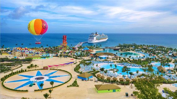 Bay khinh khí cầu tại CocoCay là trải nghiệm không thể quên, với chuyến đi êm ái và tầm nhìn toàn cảnh từ độ cao 137 mét, cho bạn cái nhìn ngoạn mục về biển xanh và bãi biển cát trắng.