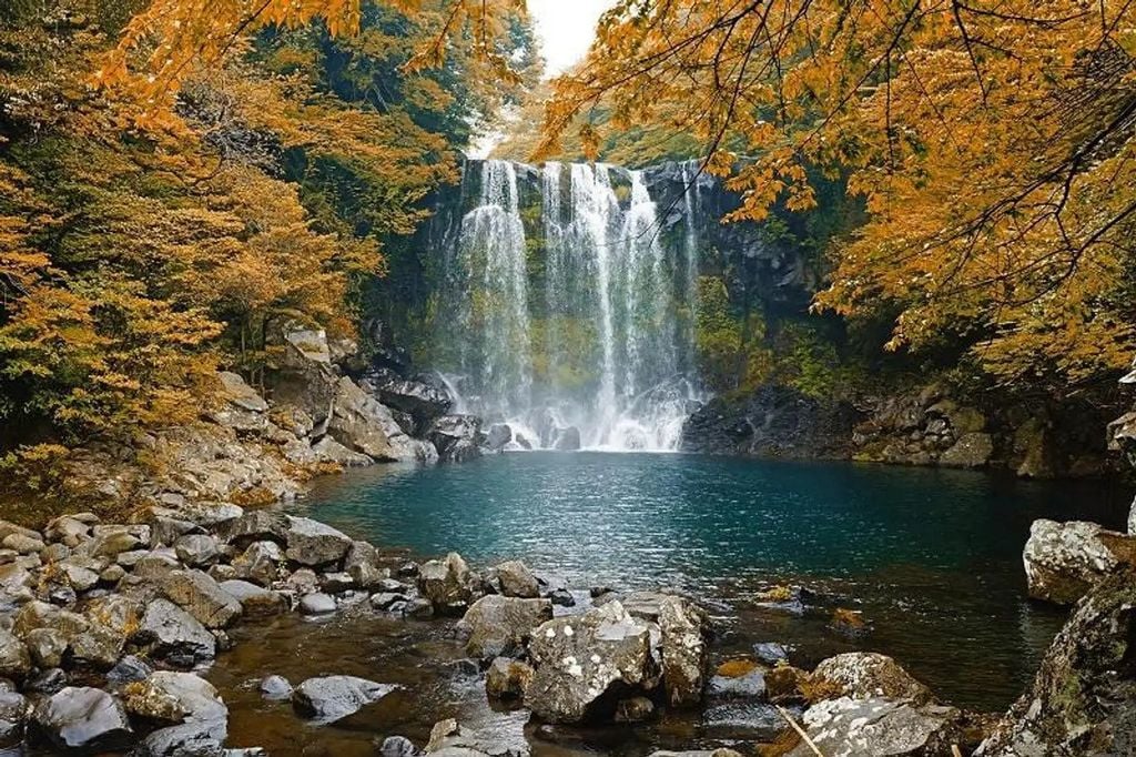 Thác Cheonjiyeon – Thác nước thơ mộng giữa thiên nhiên xanh mát.